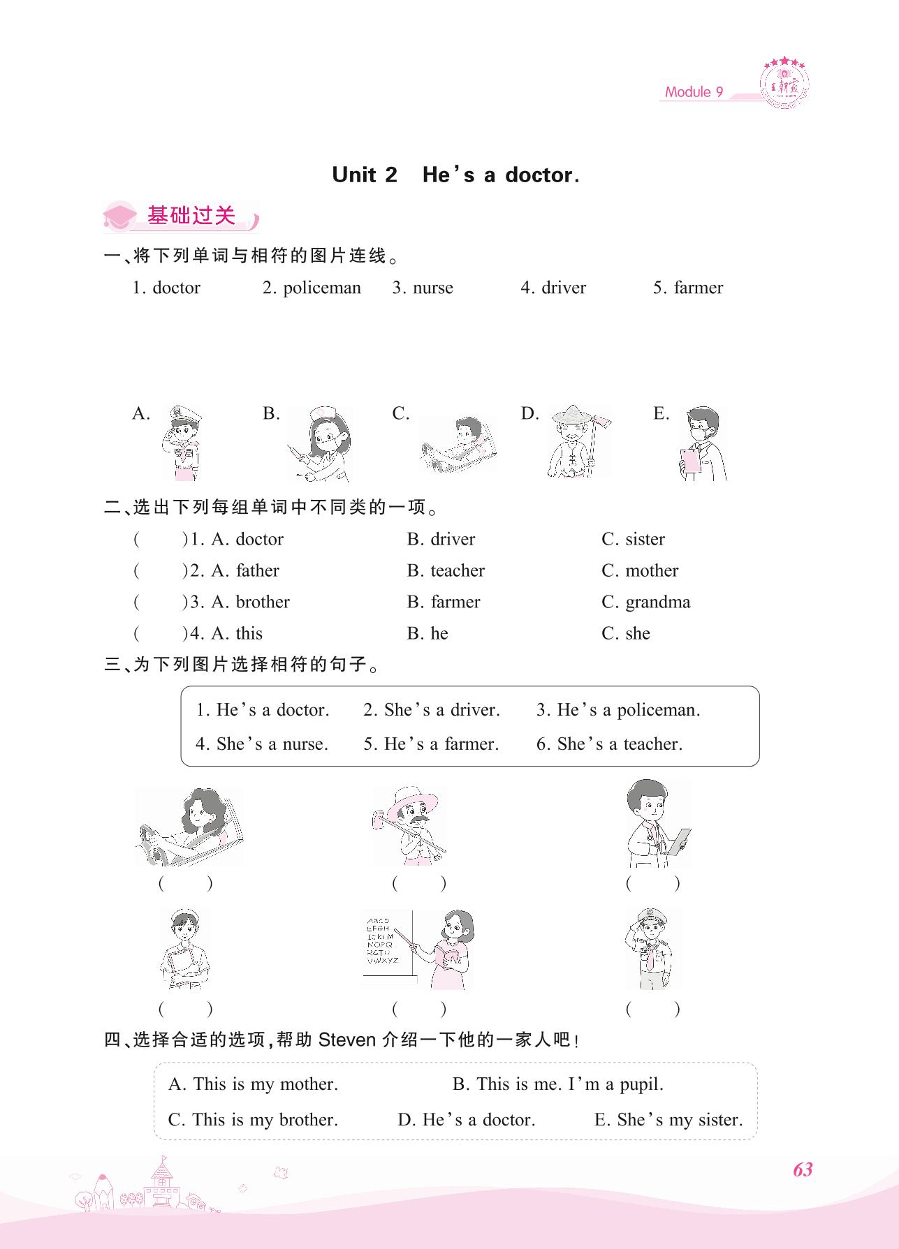 2021上册三年级英语外研版 Module 9—Unit 2 He’s a doctor.