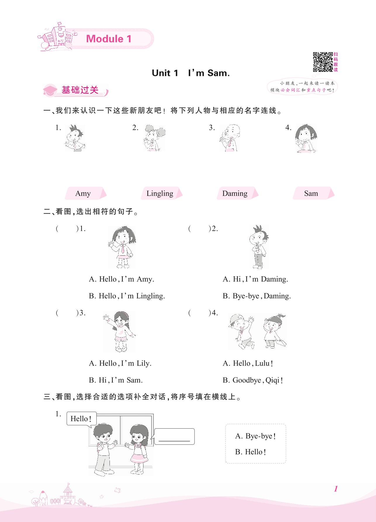 2021上册三年级英语外研版 Module 1—Unit 1 I’m Sam.