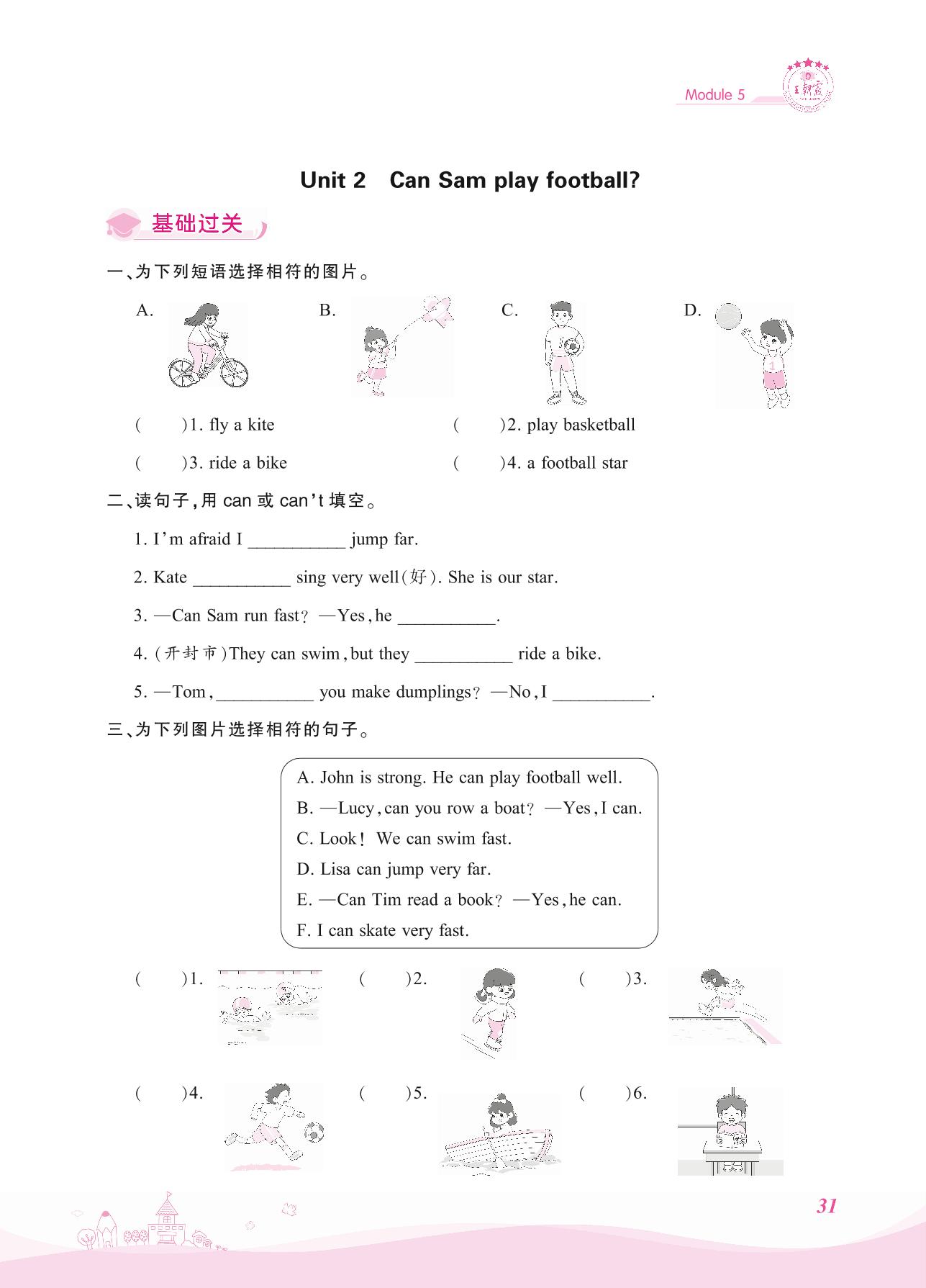 2021上册四年级英语外研版 Module 5—Unit 2 Can Sam play football?