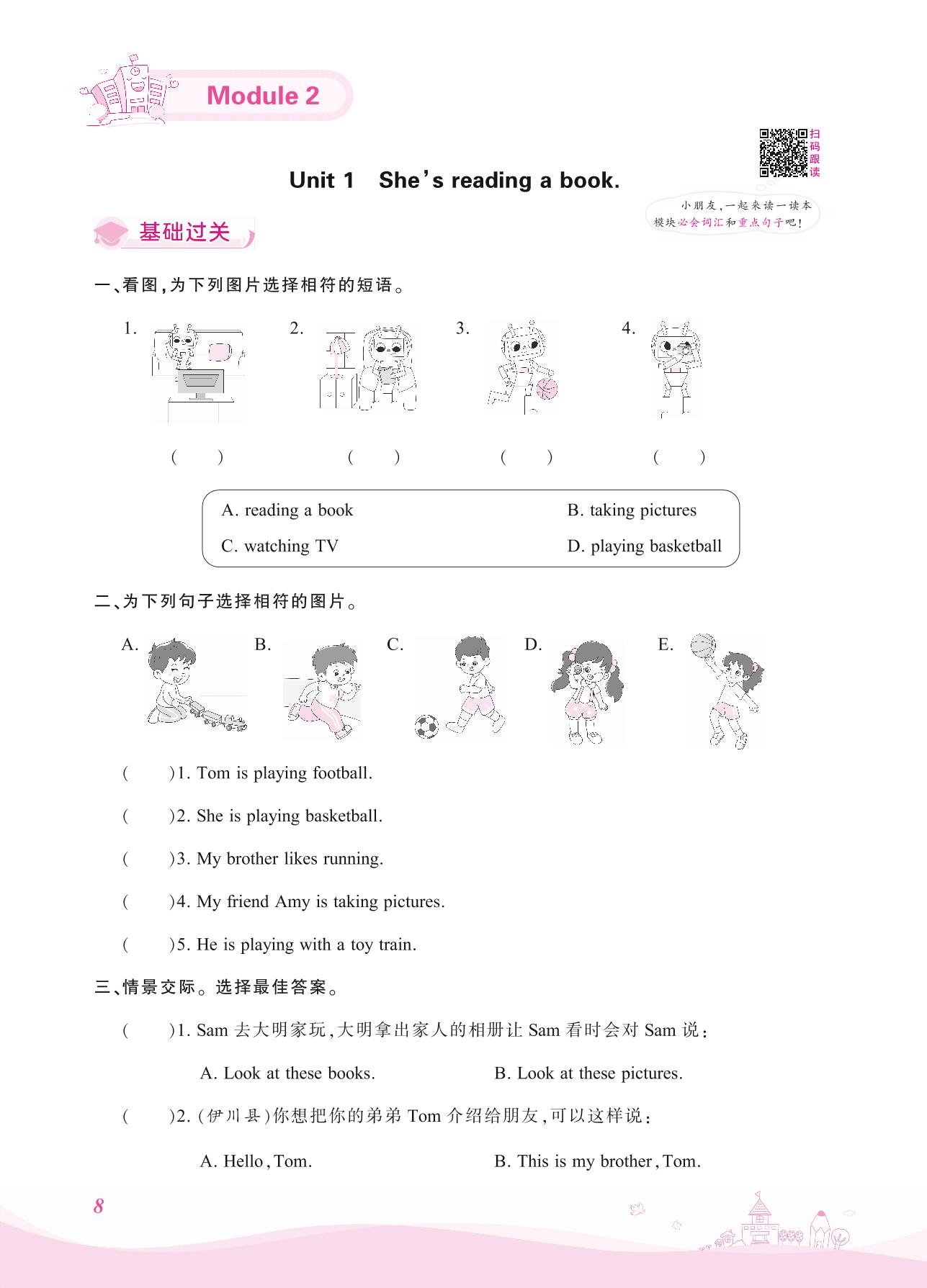 2021上册四年级英语外研版 Module 2—Unit 1 She’s reading a book.