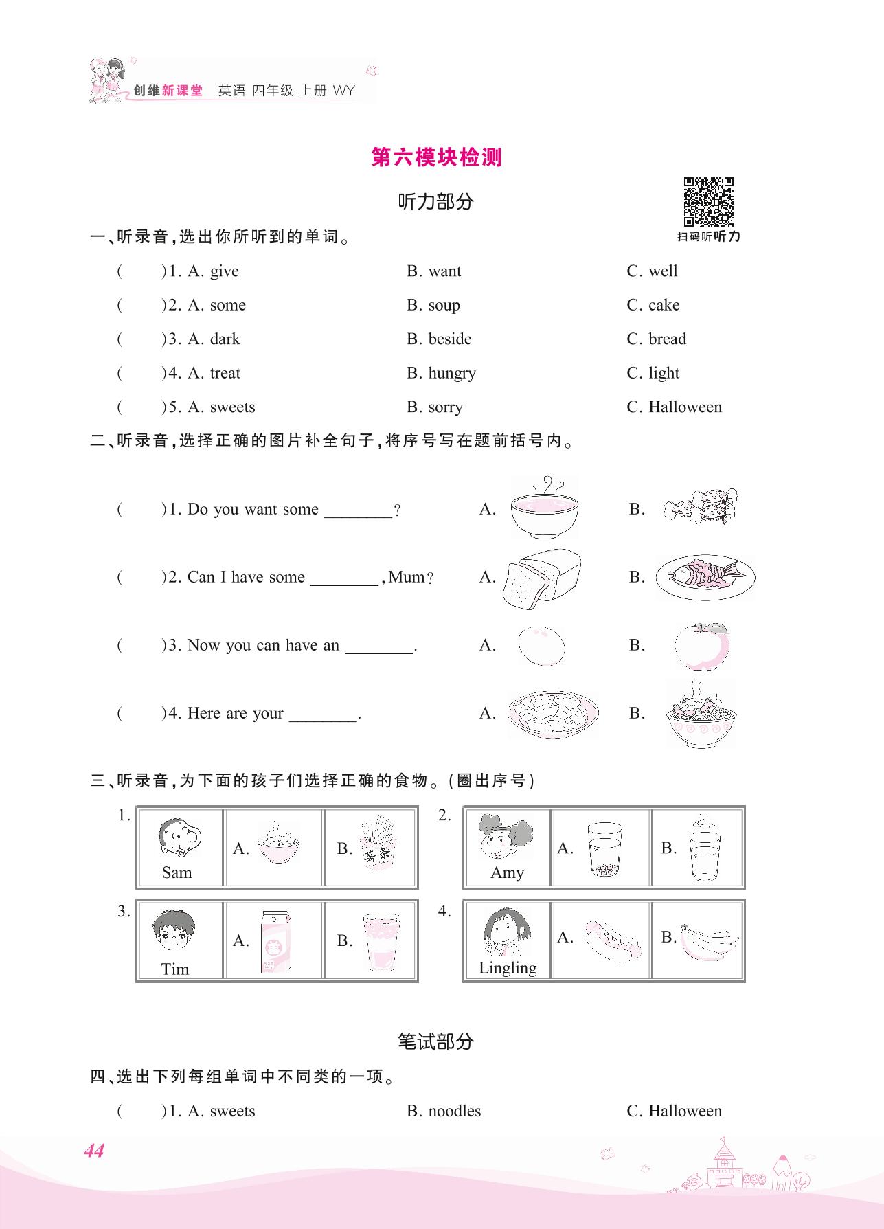 2021上册四年级英语外研版 第六模块检测