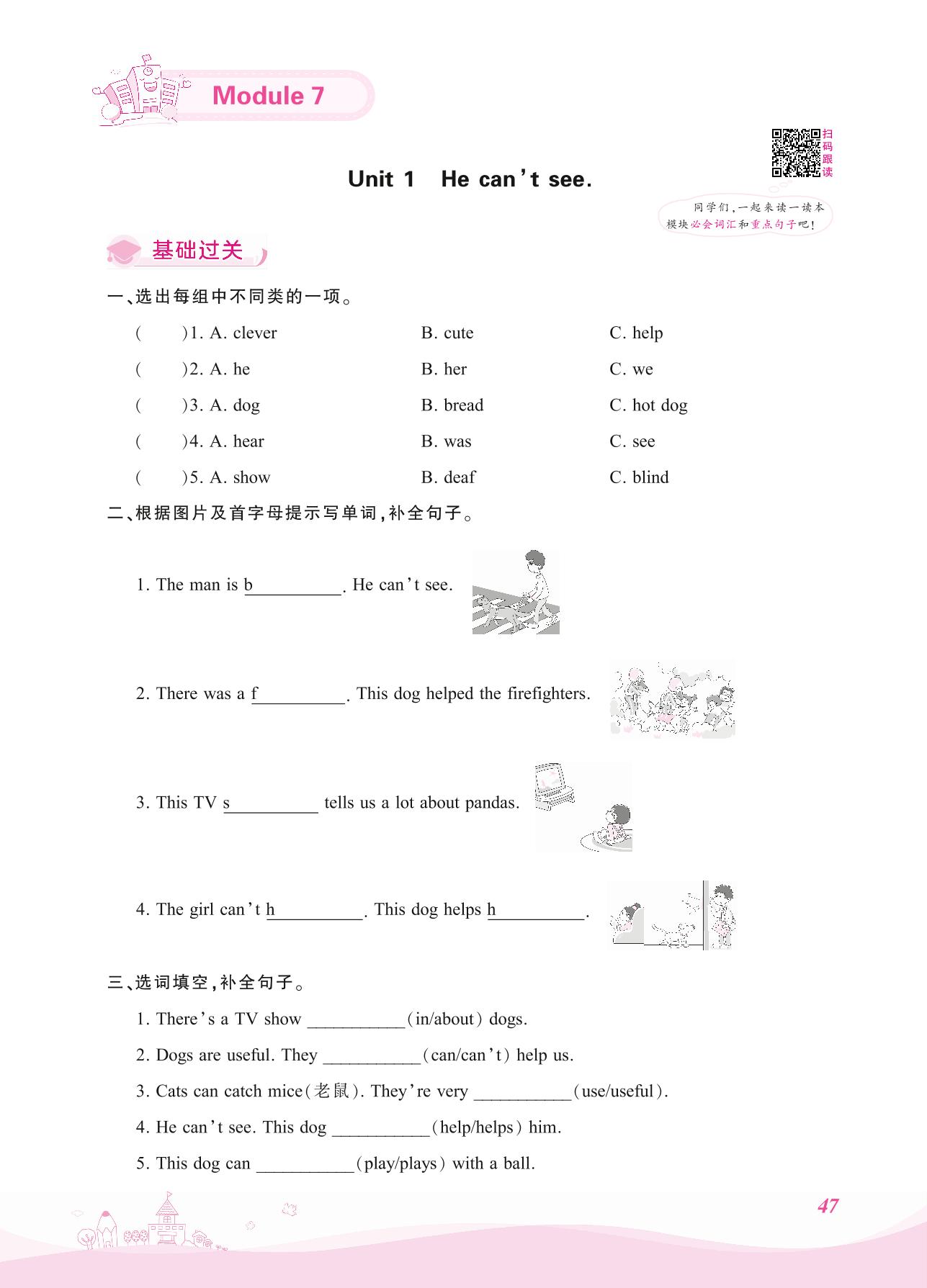 2021上册五年级英语外研版 Module 7—Unit 1 He can’t see.