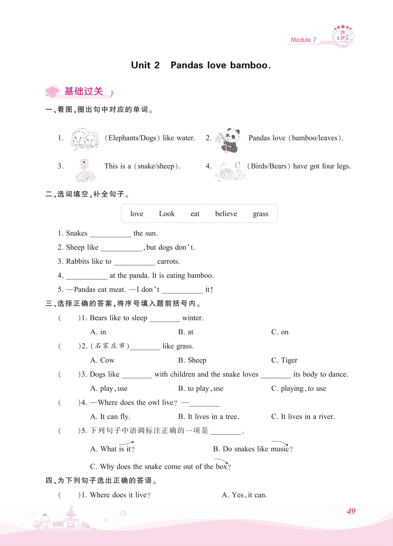 2021上册六年级英语外研版 Module 7—Unit 2 Pandas love bamboo.