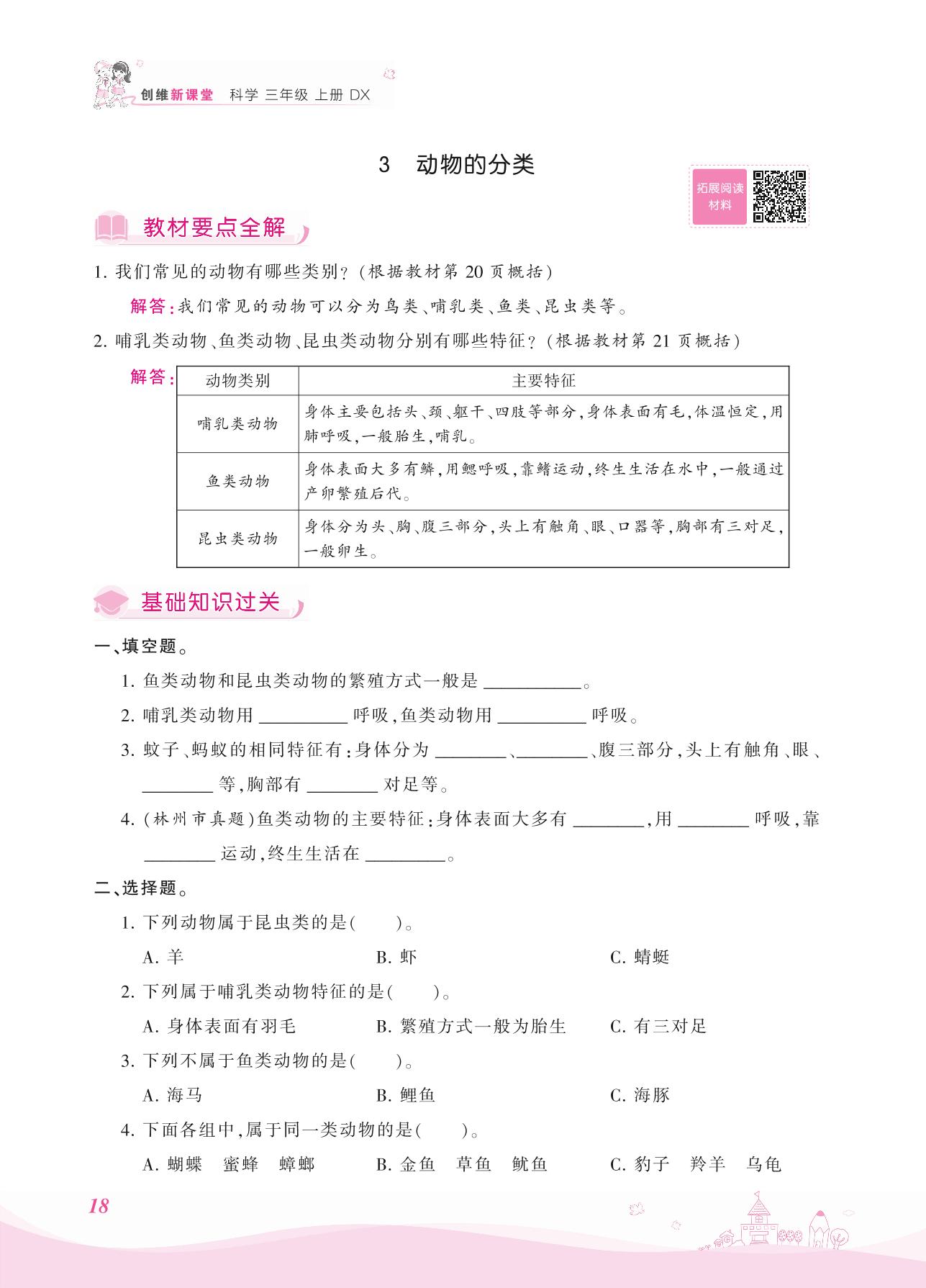 2021上册三年级科学大象版 第二单元——3 动物的分类