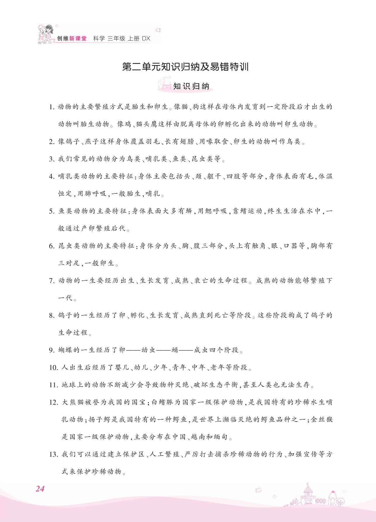 2021上册三年级科学大象版 第二单元知识归纳及易错特训
