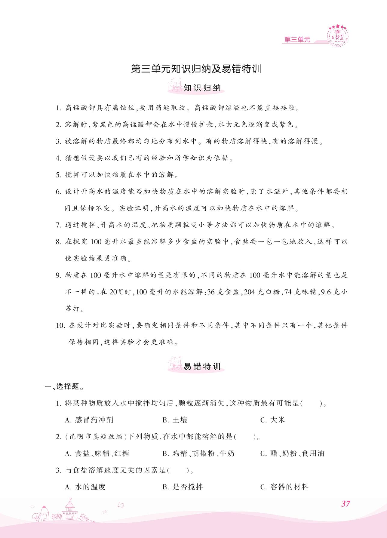 2021上册三年级科学大象版 第三单元知识归纳及易错特训