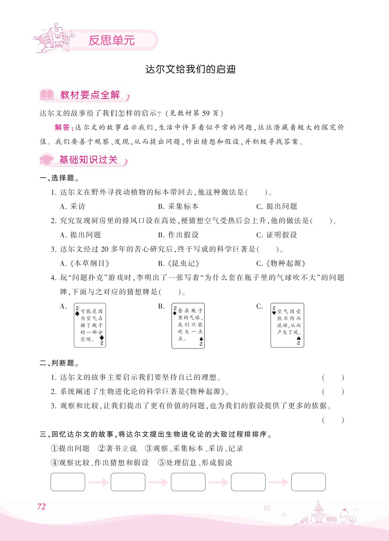 2021上册三年级科学大象版 反思单元——达尔文给我们的启迪