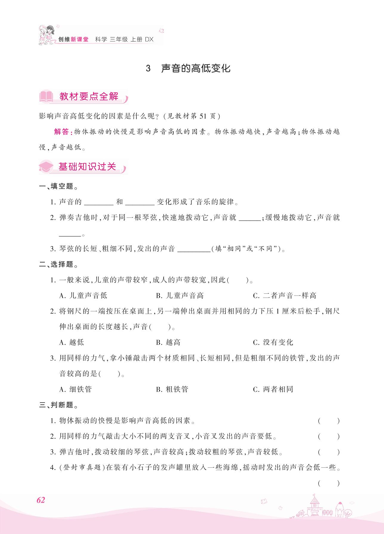 2021上册三年级科学大象版 第五单元——3 声音的高低变化