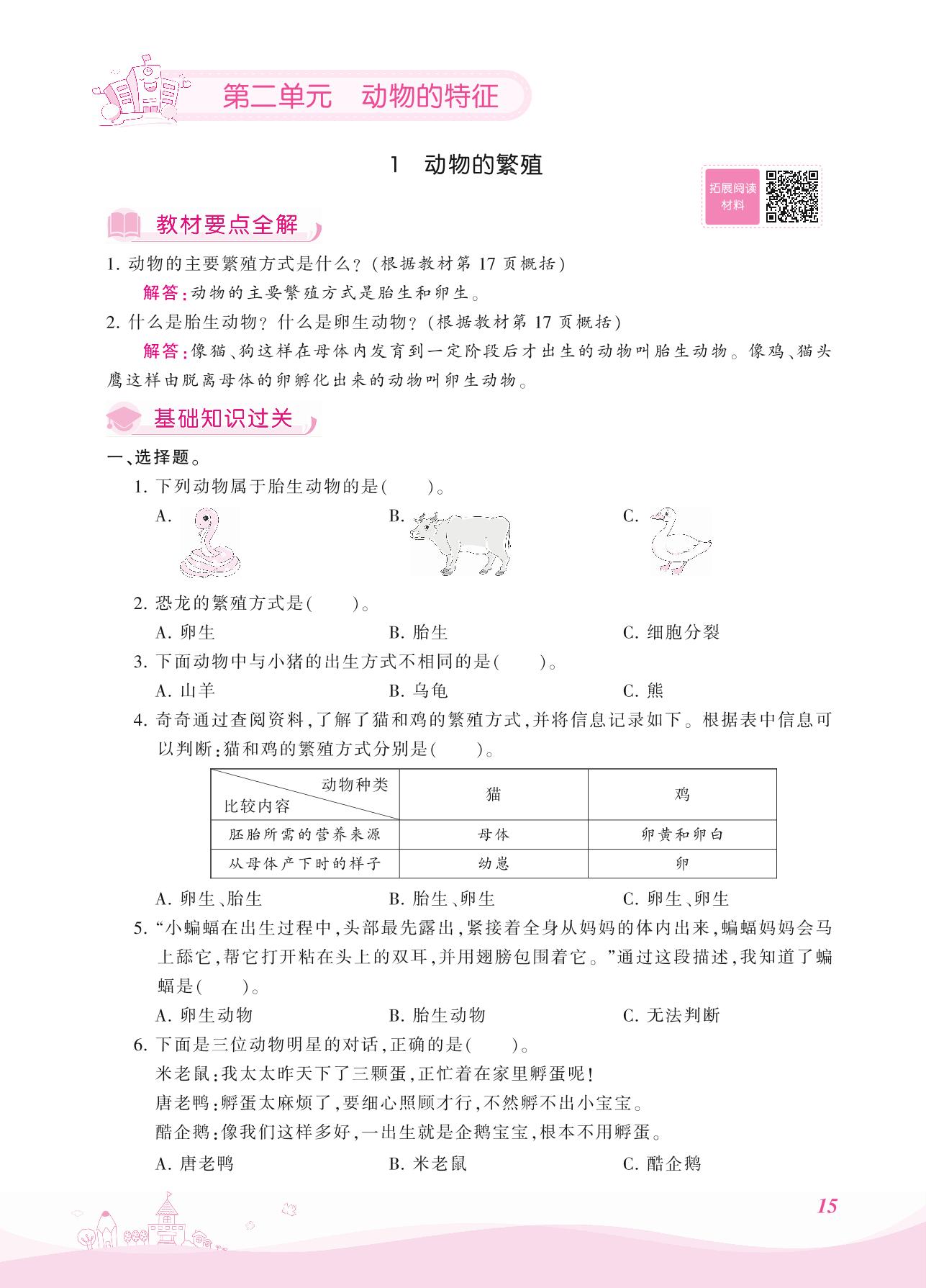 2021上册三年级科学大象版 第二单元——1 动物的繁殖