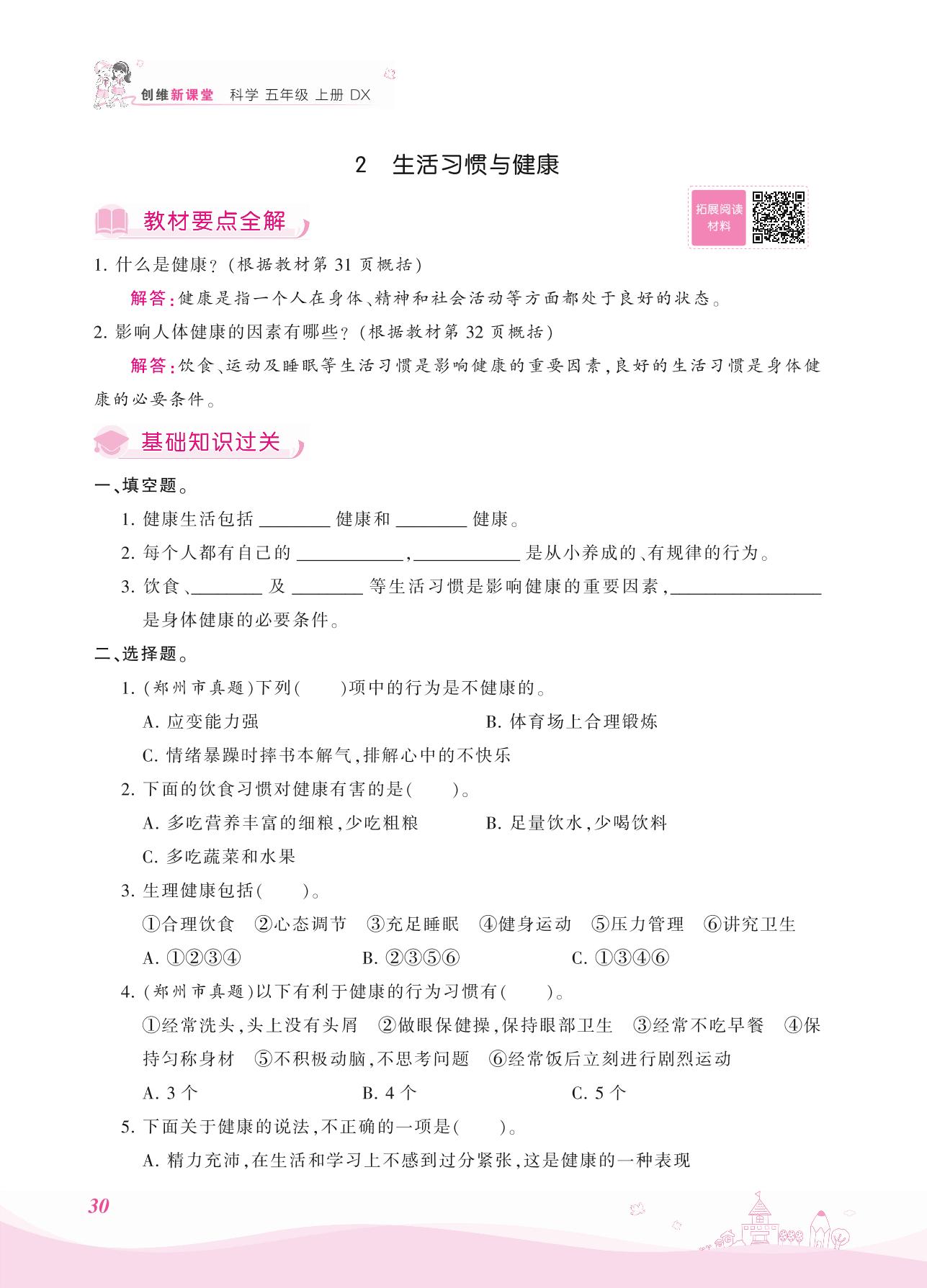 2021上册五年级科学大象版 第三单元——2 生活习惯与健康