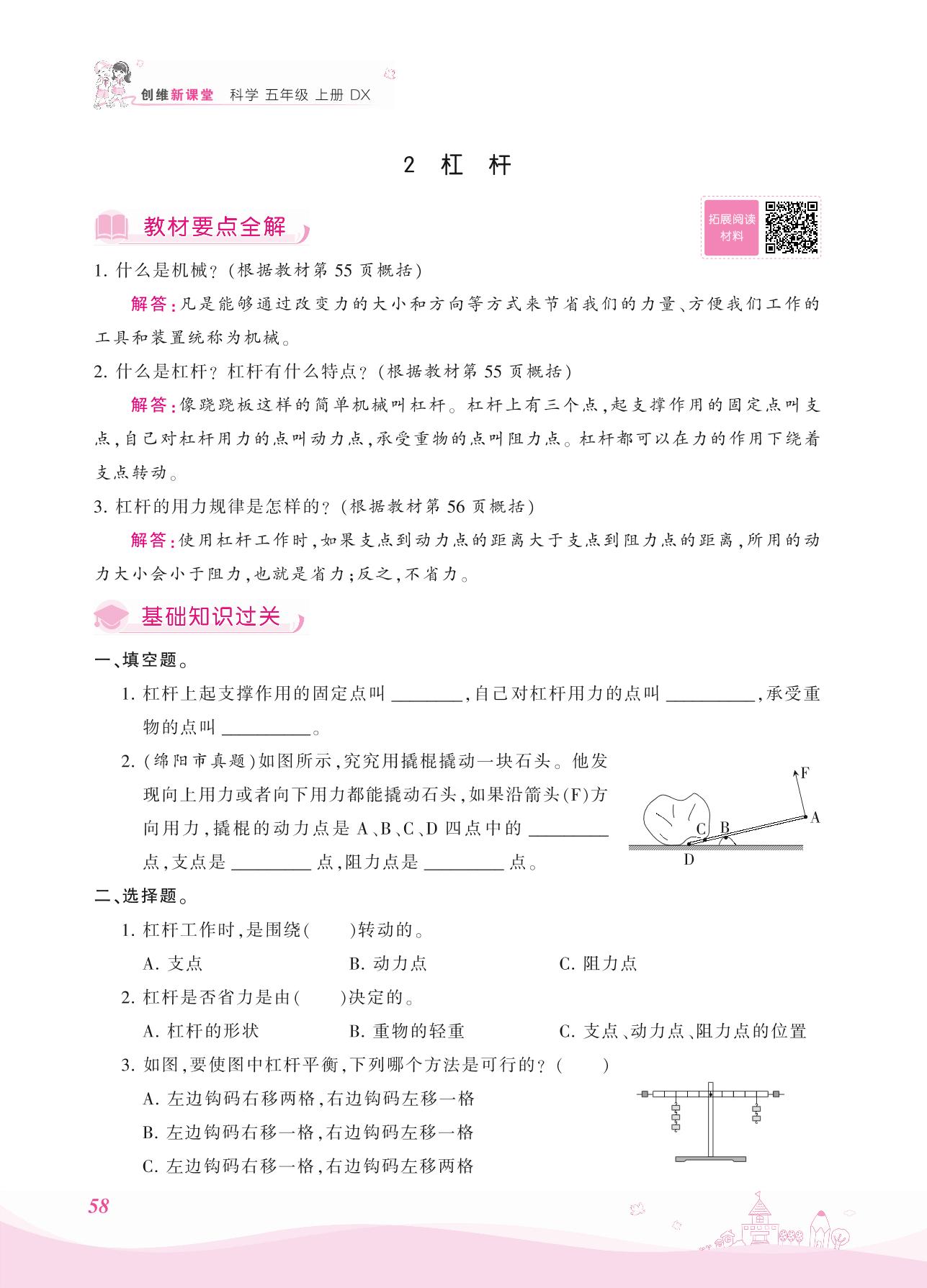 2021上册五年级科学大象版 第五单元——2 杠杆