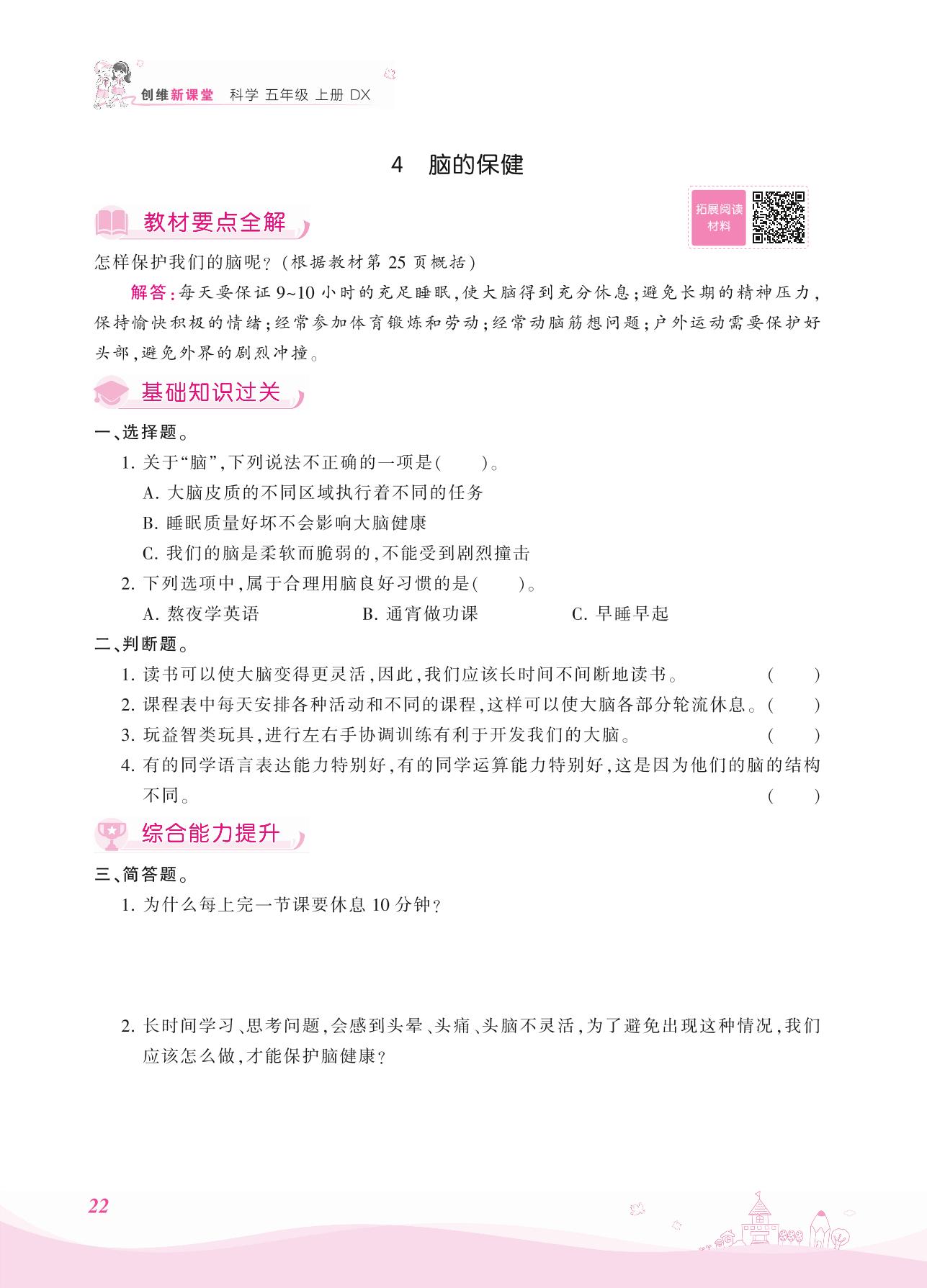 2021上册五年级科学大象版 第二单元——4 脑的保健