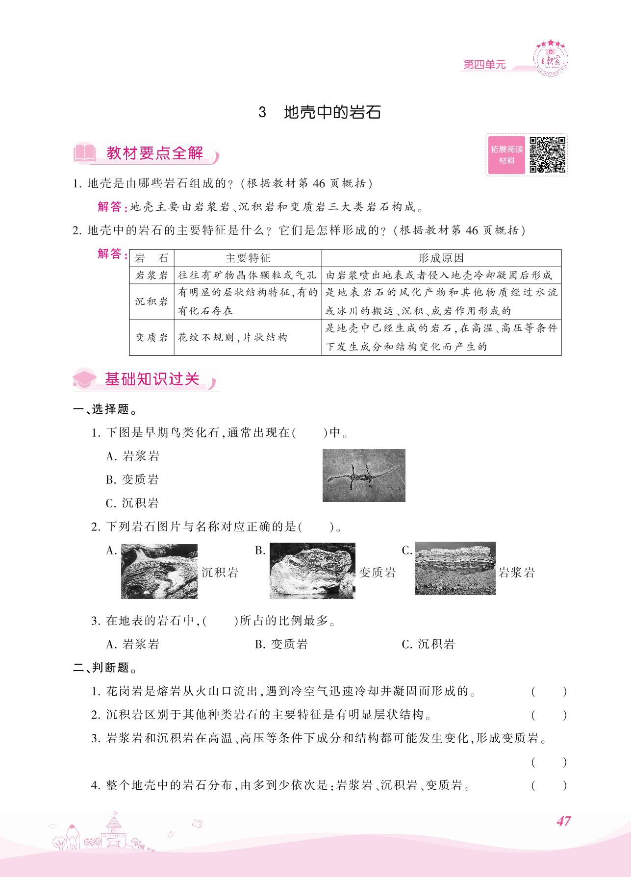 2021上册五年级科学大象版 第四单元——3 地壳中的岩石