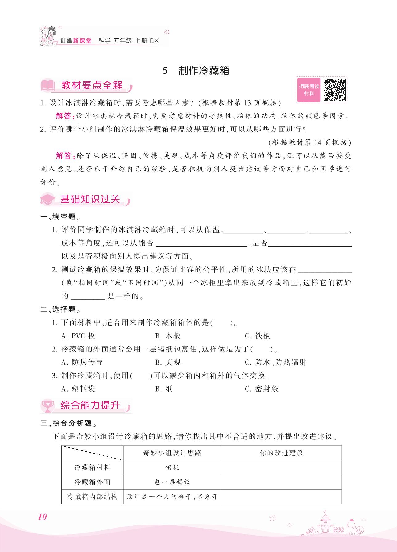 2021上册五年级科学大象版 第一单元——5 制作冷藏箱