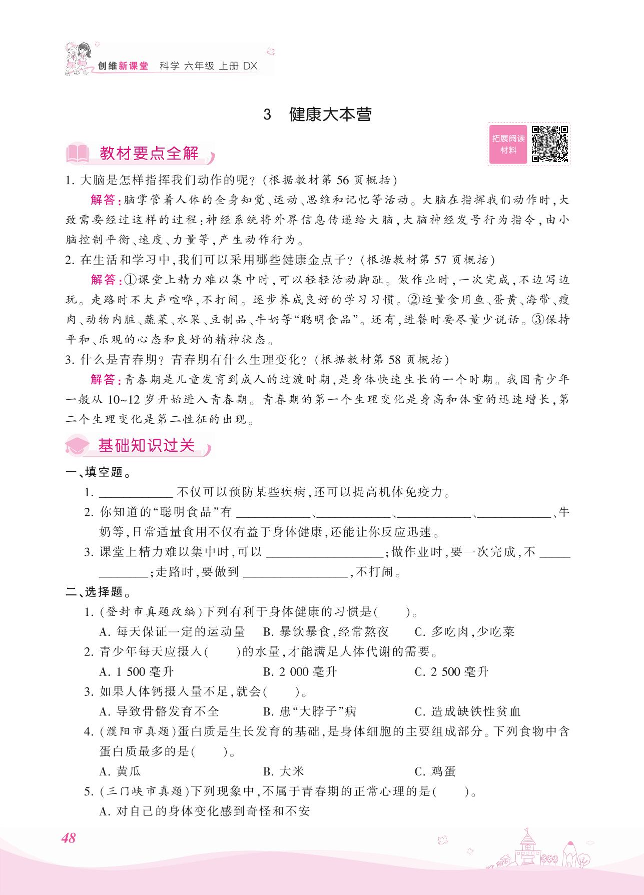 2021上册六年级科学大象版 第四单元——3 健康大本营