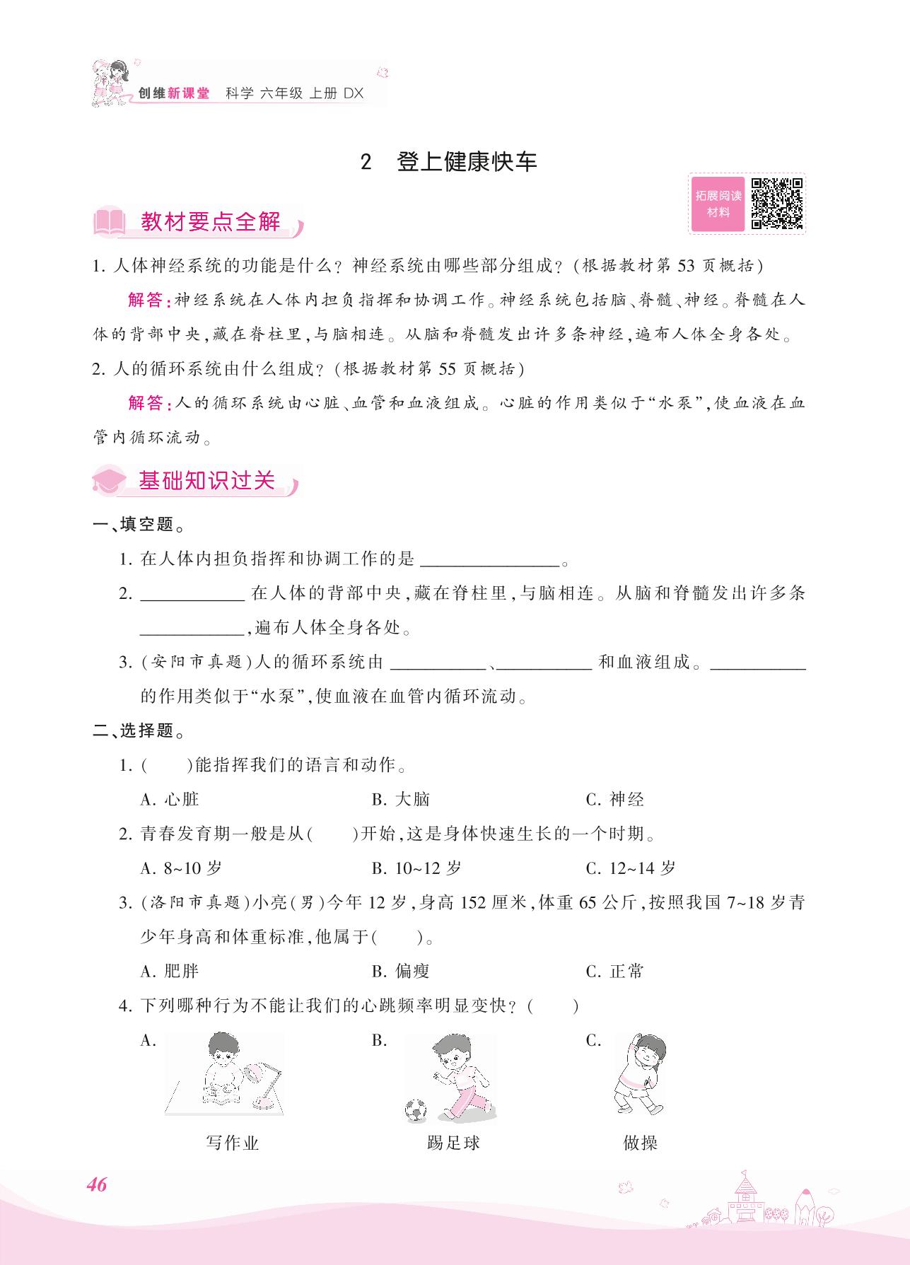 2021上册六年级科学大象版 第四单元——2 登上健康快车