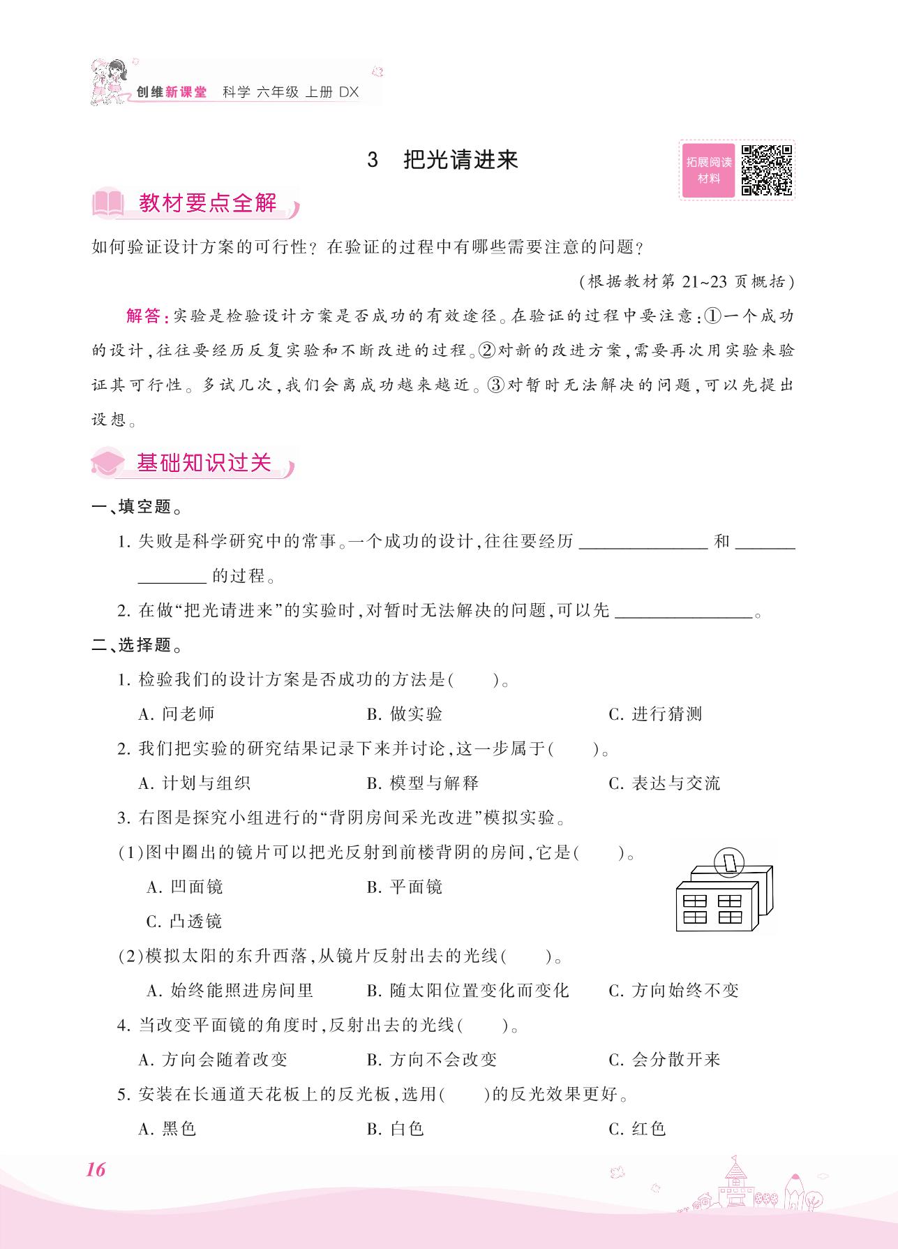 2021上册六年级科学大象版 第二单元——3 把光请进来