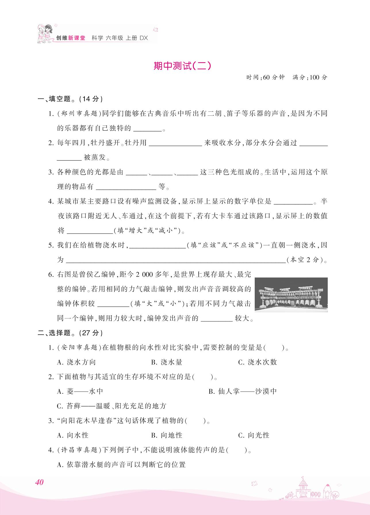 2021上册六年级科学大象版 期中测试(二)