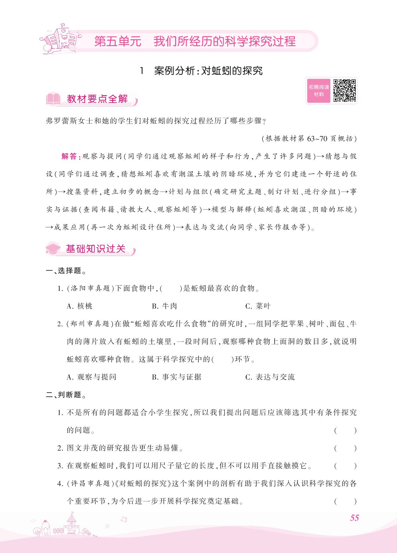 2021上册六年级科学大象版 第五单元——1 案例分析:对蚯蚓的探究