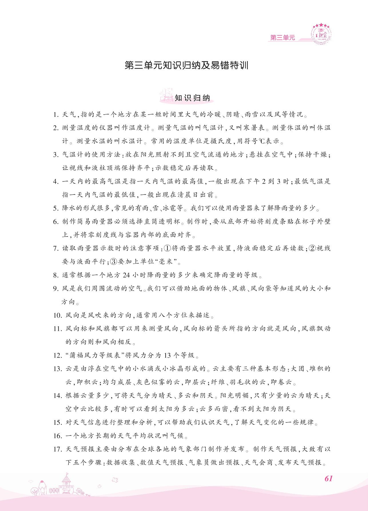 2021上册三年级科学教科版 第三单元知识归纳及易错特训