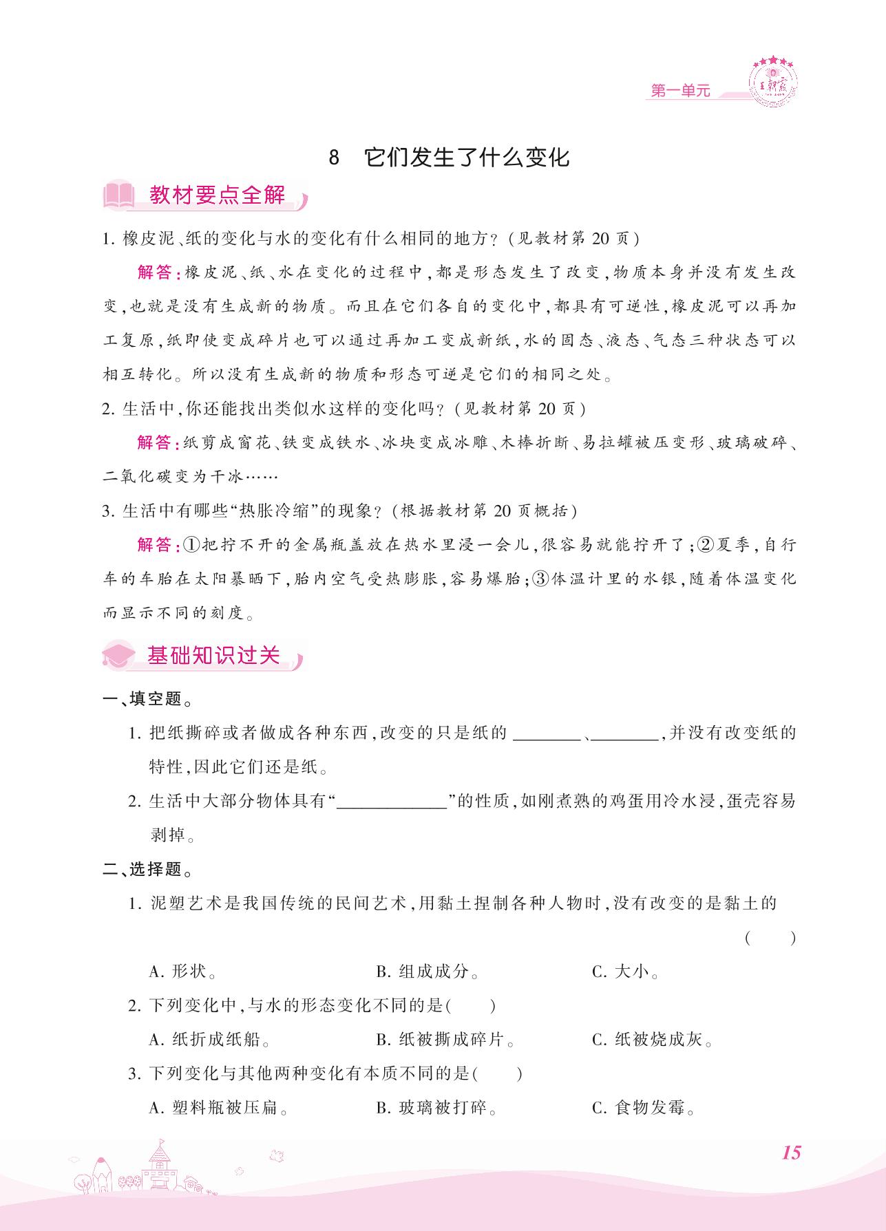 2021上册三年级科学教科版 第一单元 水——8 它们发生了什么变化