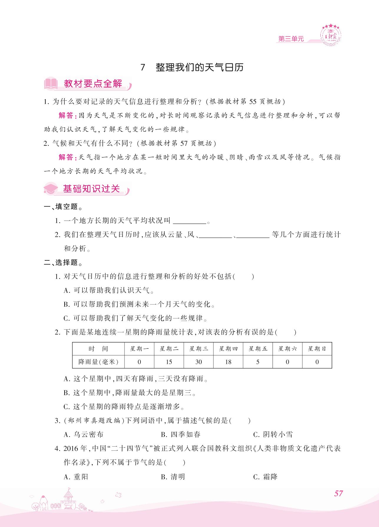 2021上册三年级科学教科版 第三单元 天气——7 整理我们的天气日历