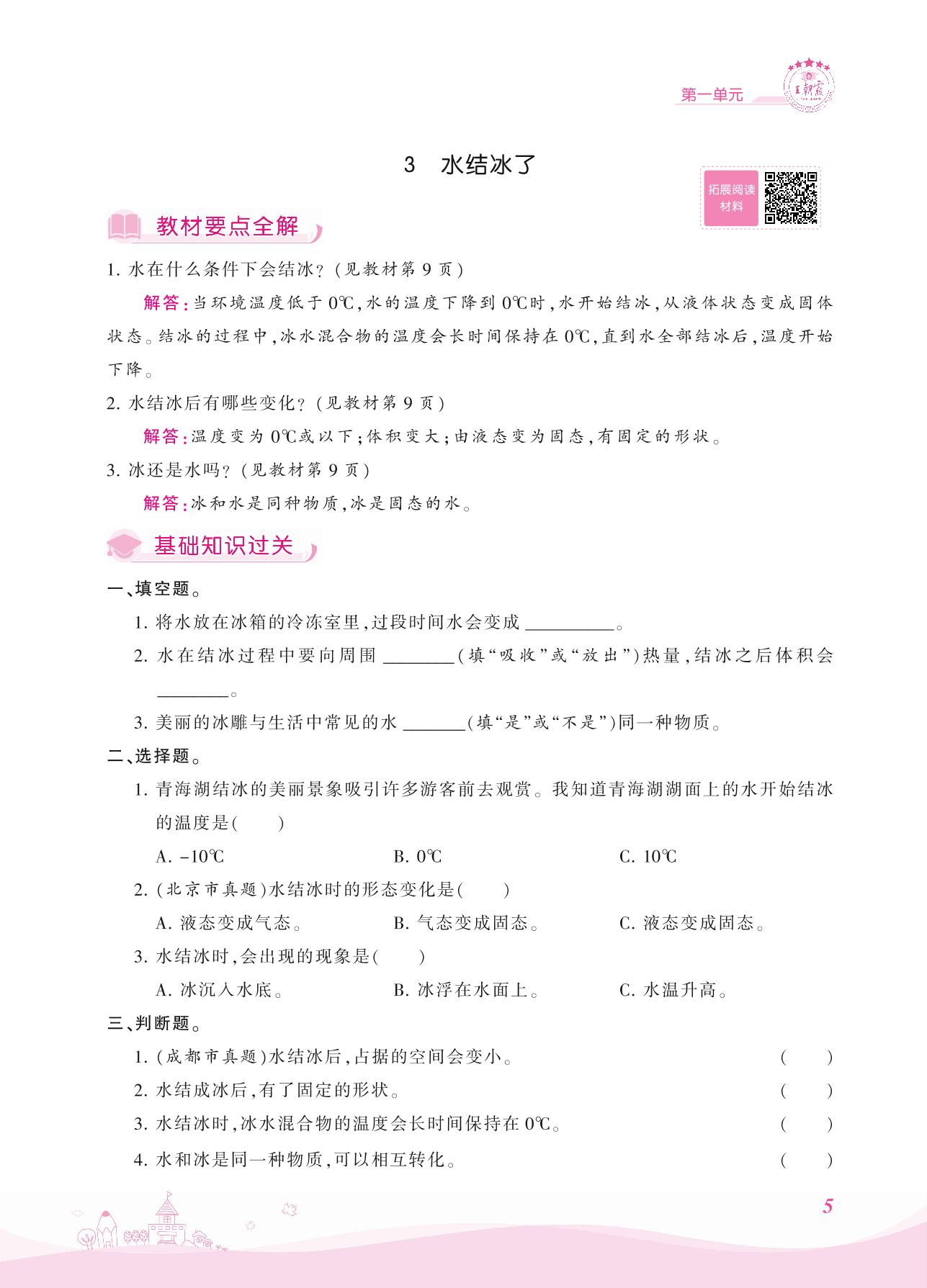 2021上册三年级科学教科版 第一单元 水——3 水结冰了