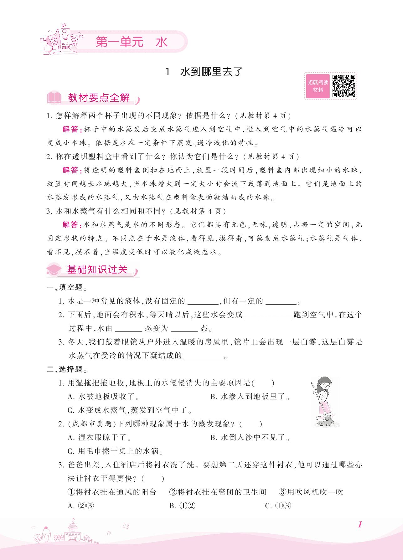 2021上册三年级科学教科版 第一单元 水——1 水到哪里去了