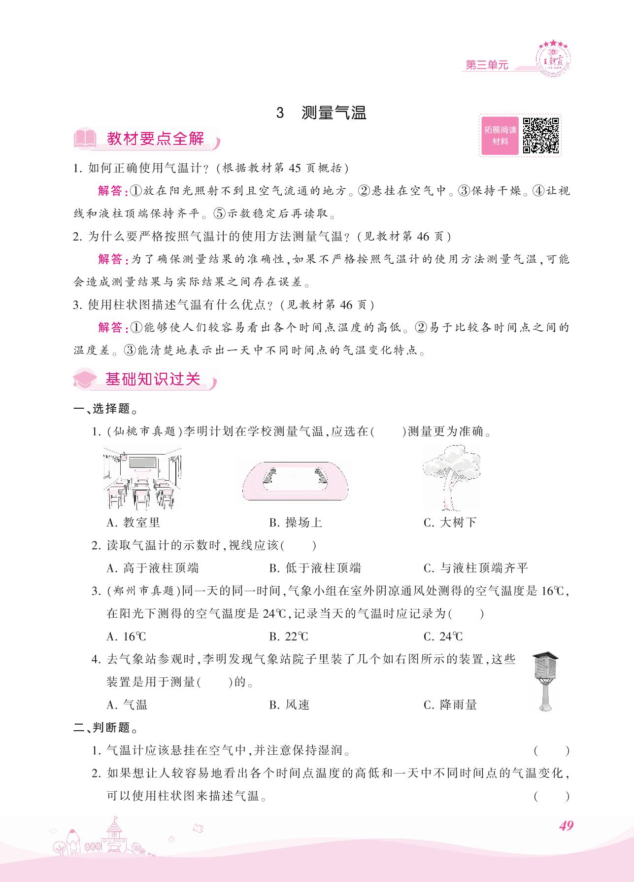 2021上册三年级科学教科版 第三单元 天气——3 测量气温