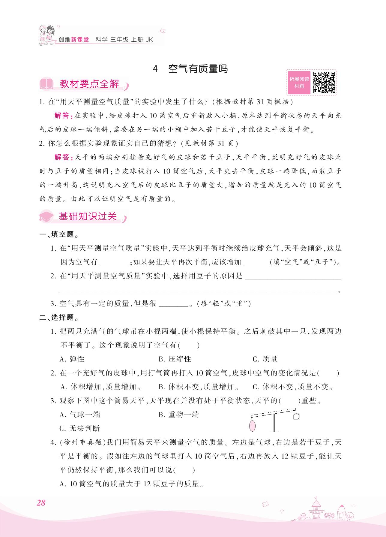 2021上册三年级科学教科版 第二单元 空气——4 空气有质量吗