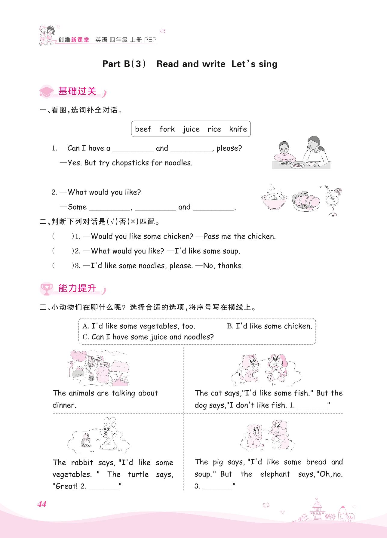 2021上册四年级英语人教PEP版 Unit 5—Part B(3) Read and write Let’s sing