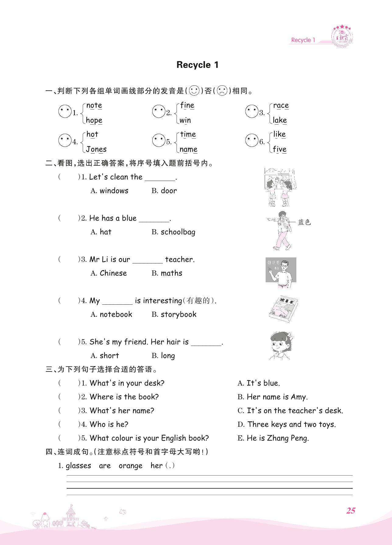2021上册四年级英语人教PEP版 Recycle 1
