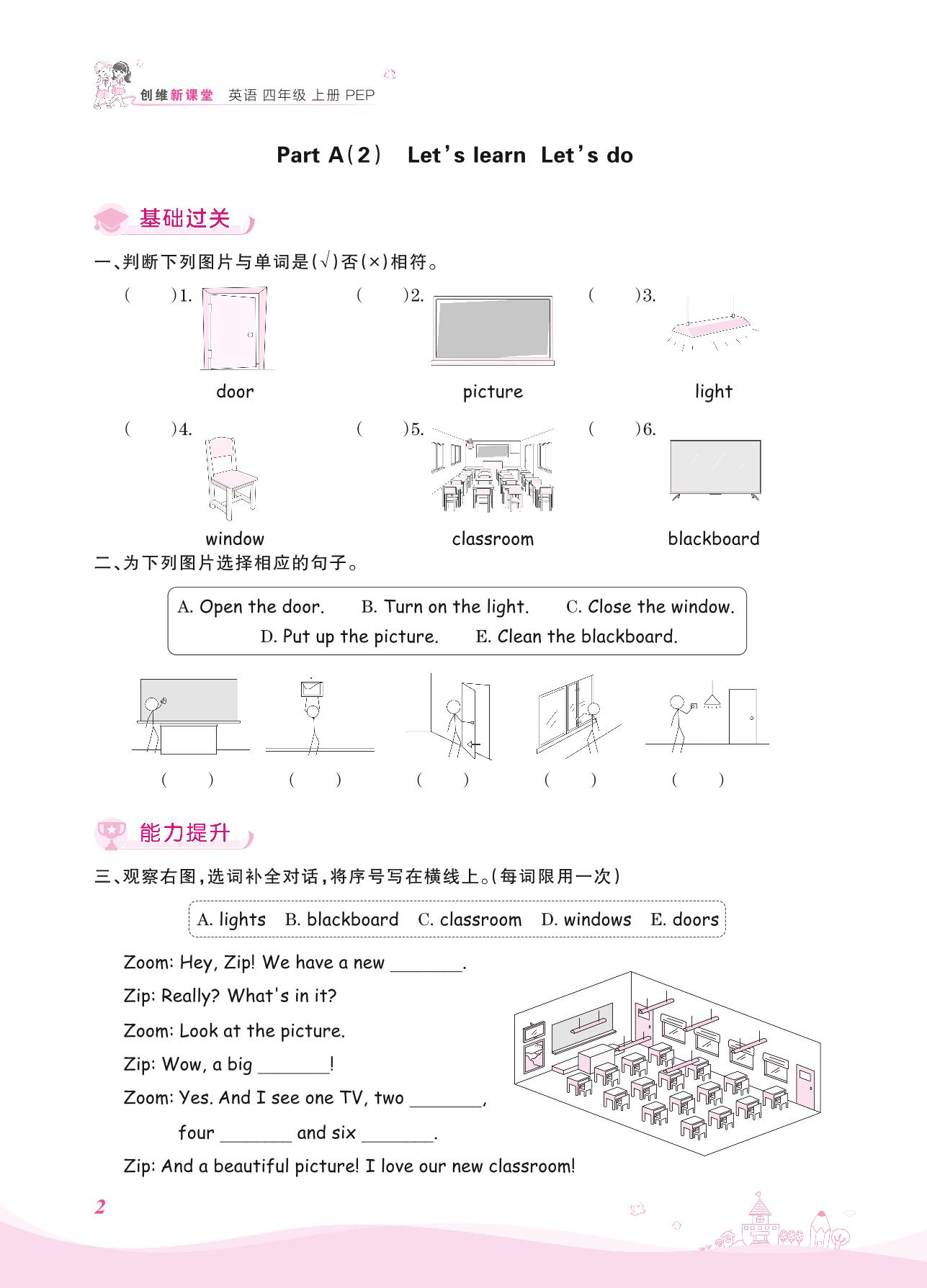 2021上册四年级英语人教PEP版 Unit 1—Part A(2) Let’s learn Let’s do