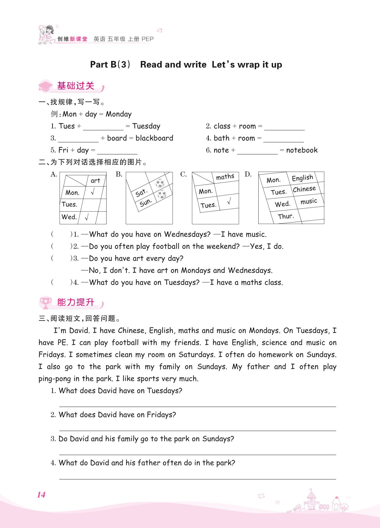2021上册五年级英语人教PEP版 Unit 2—Part B(3) Read and write Let’s wrap it up
