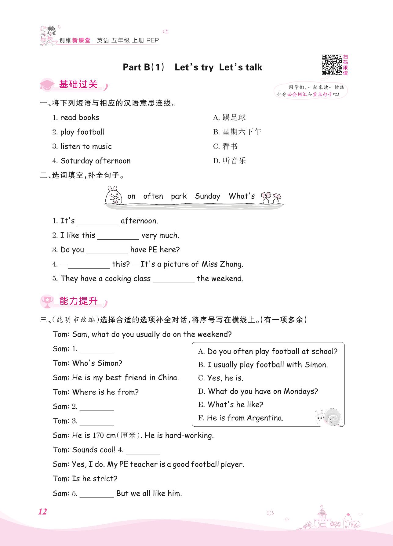 2021上册五年级英语人教PEP版 Unit 2—Part B(1) Let’s try Let’s talk