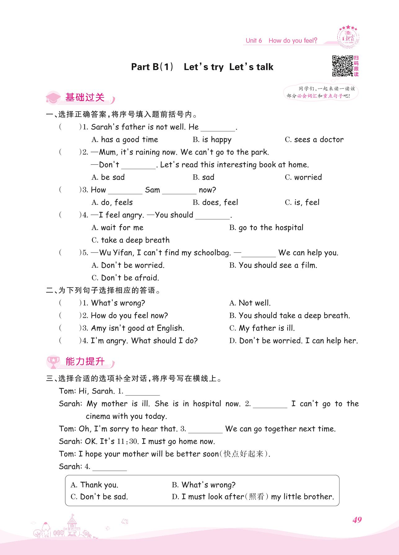 2021上册六年级英语人教PEP版 Unit 6—Part B(1) Let’s try Let’s talk