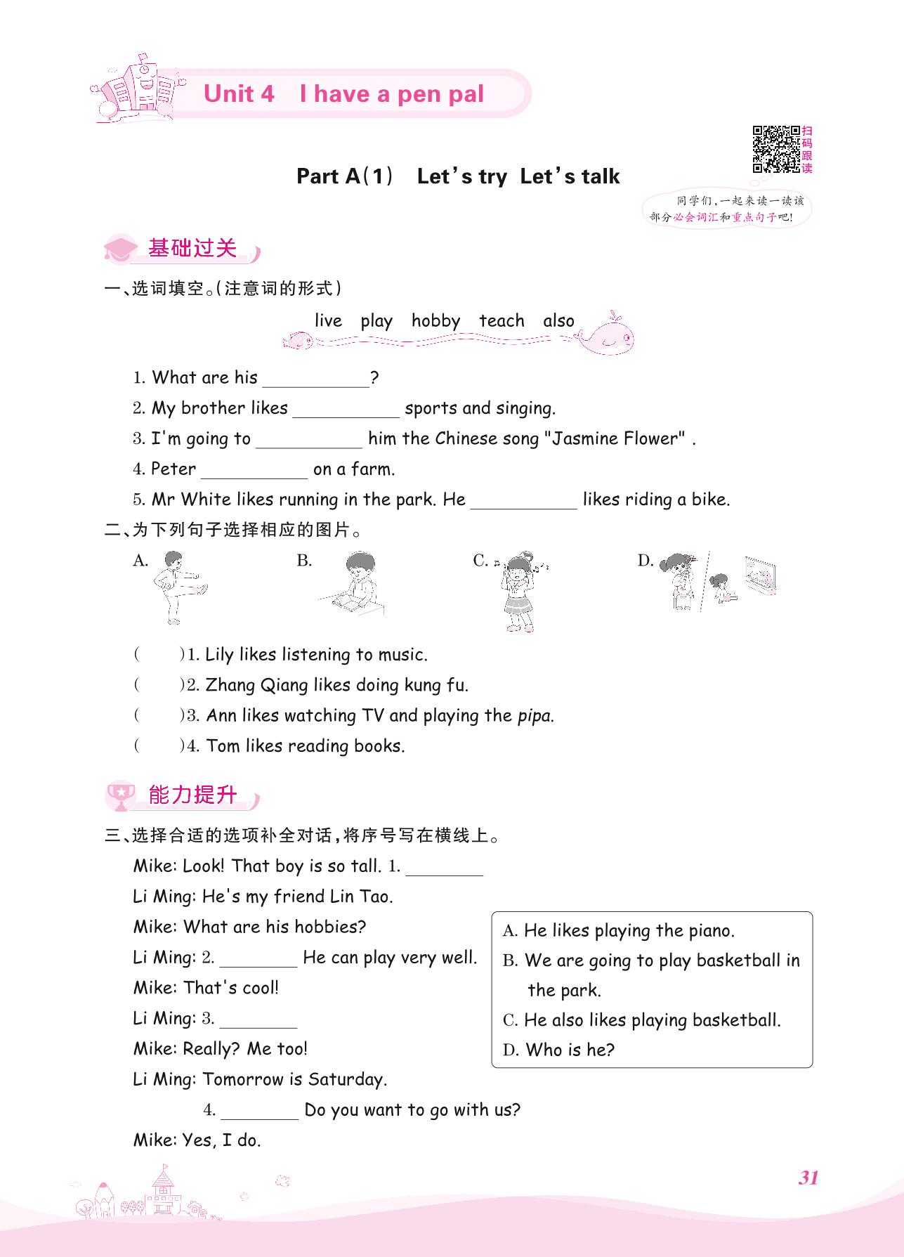 2021上册六年级英语人教PEP版 Unit 4—Part A(1) Let’s try Let’s talk