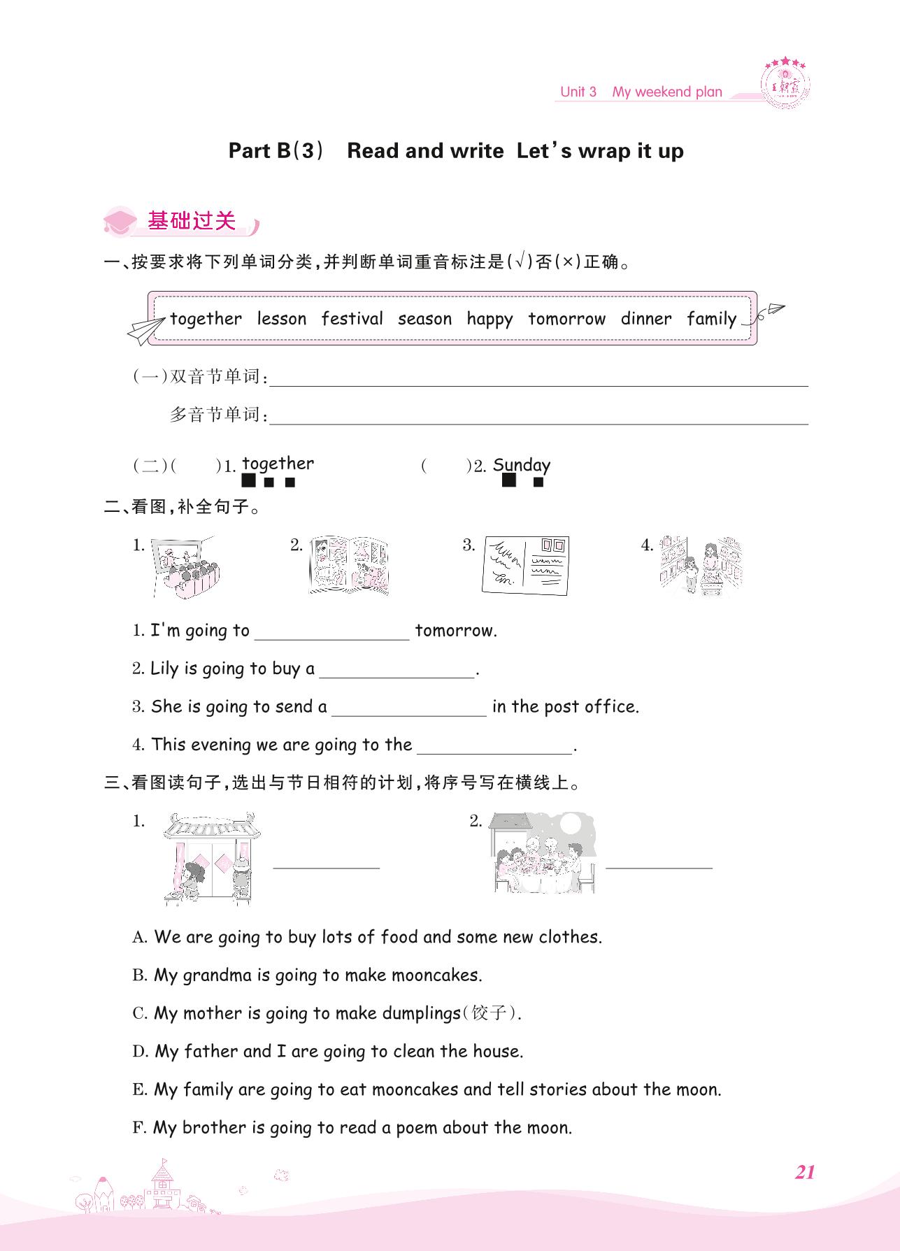 2021上册六年级英语人教PEP版 Unit 3—Part B(3) Read and write Let’s wrap it up