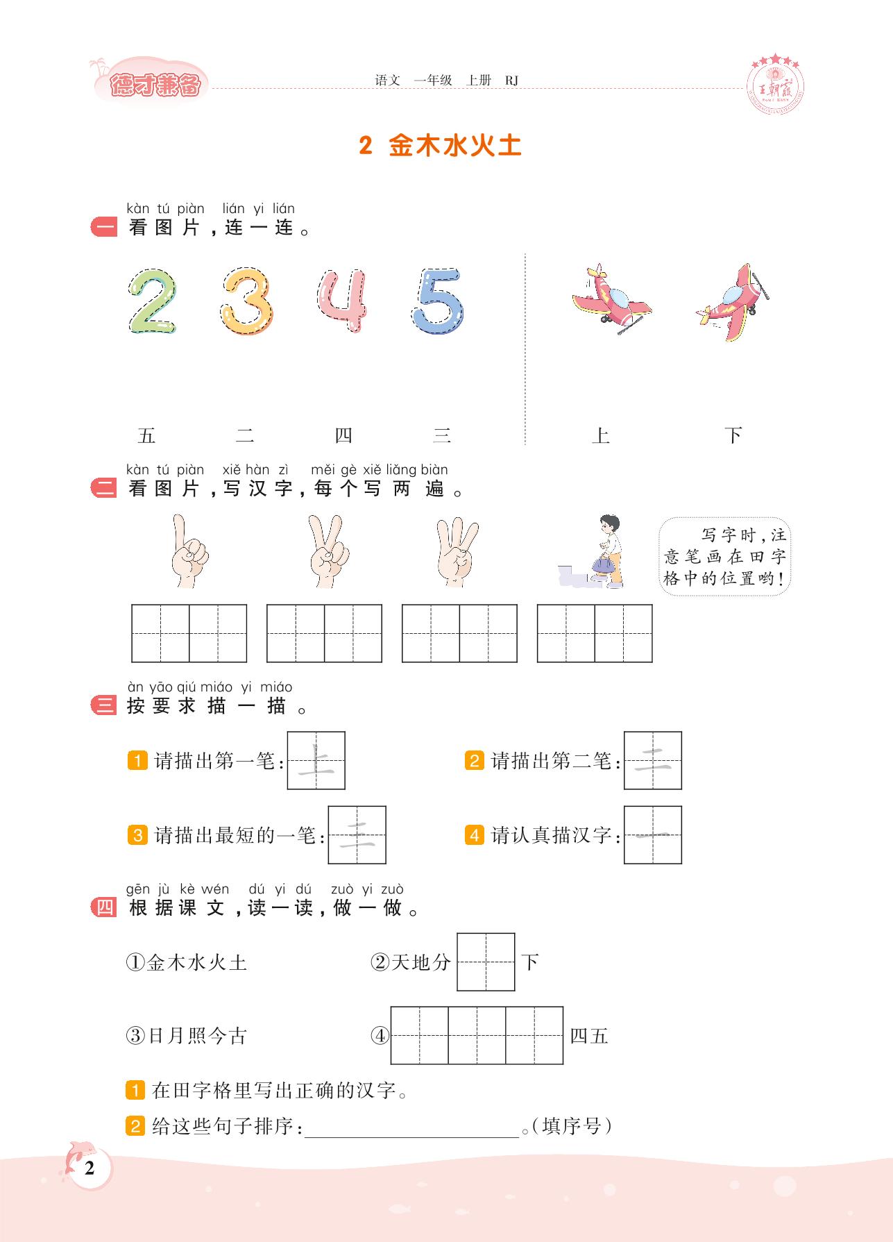 2021上册一年级语文人教版 第一单元 识字——2 金木水火土