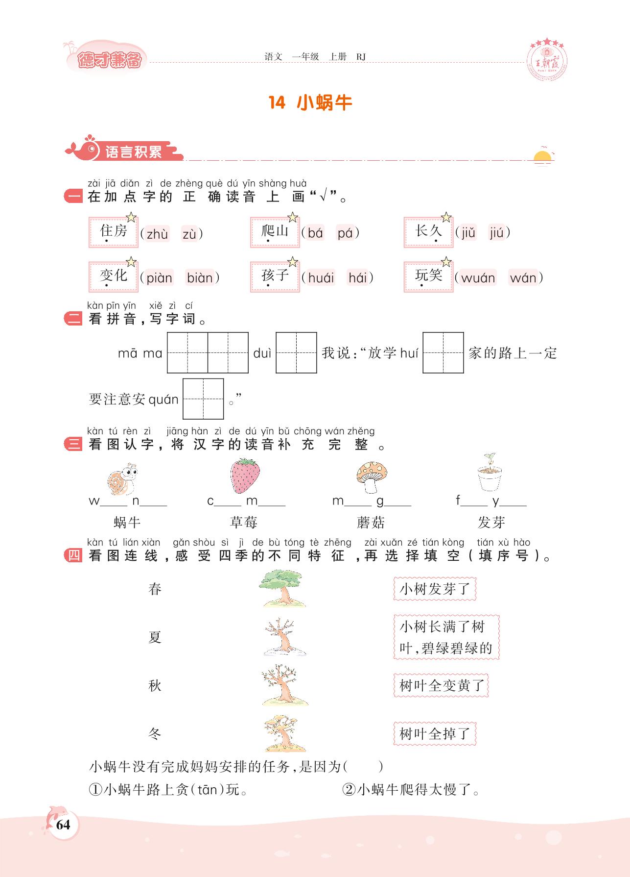 2021上册一年级语文人教版 第八单元 课文——14 小蜗牛