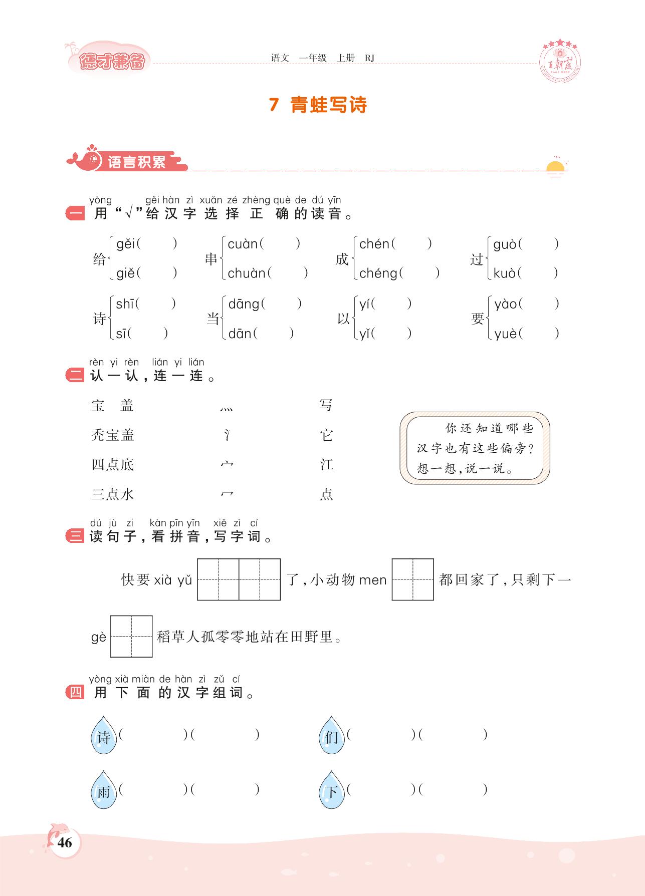 2021上册一年级语文人教版 第六单元 课文——7 青蛙写诗