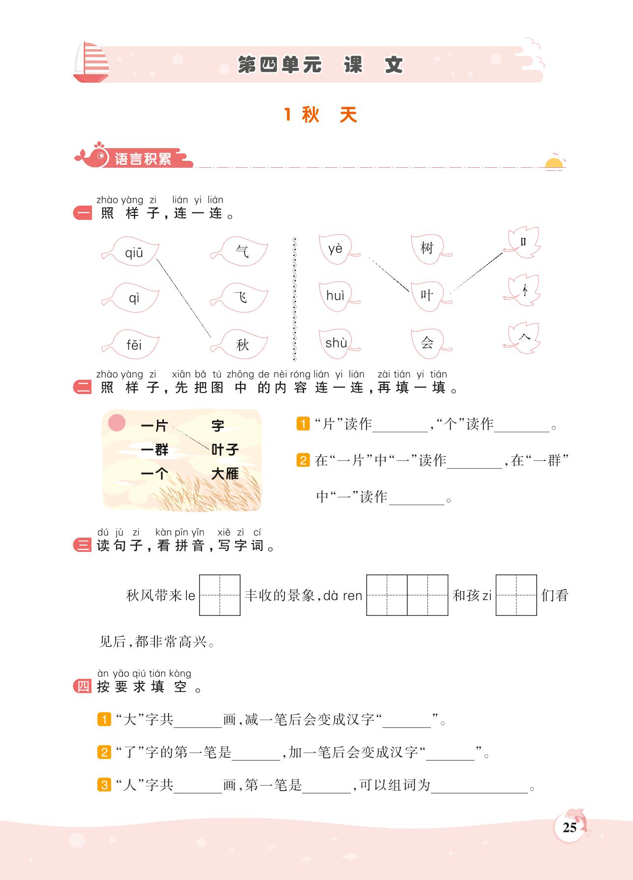2021上册一年级语文人教版 第四单元 课文——1 秋天