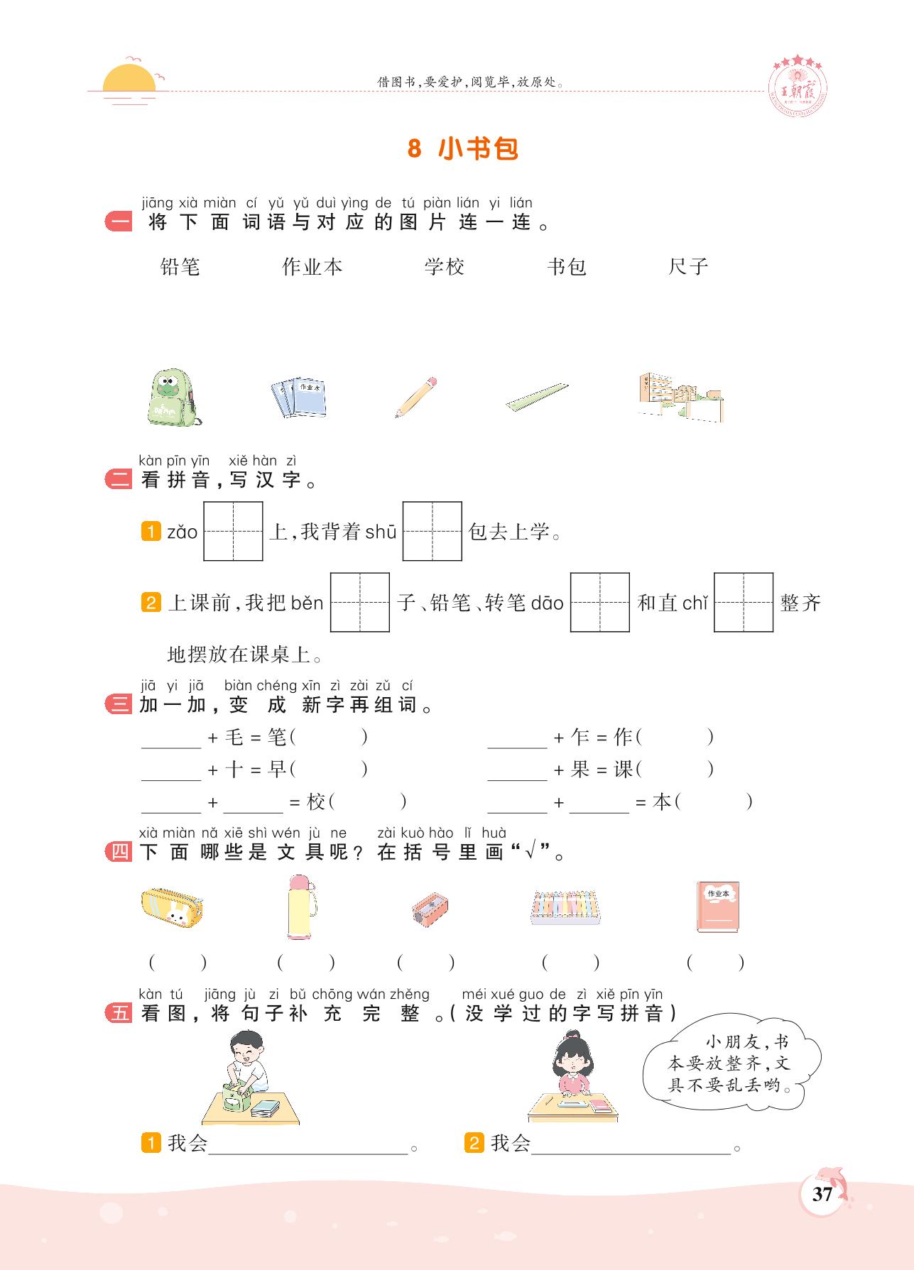 2021上册一年级语文人教版 第五单元 识字——8 小书包