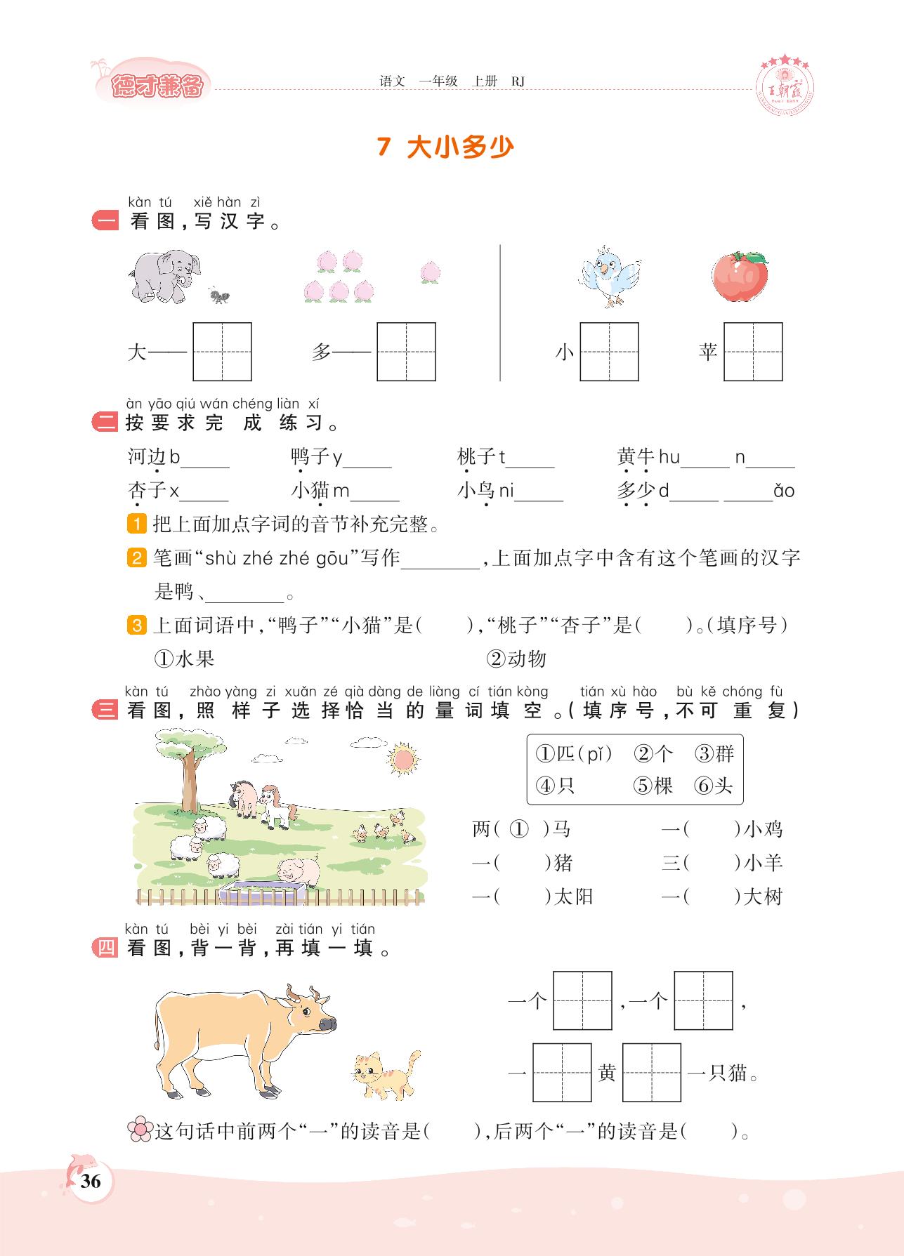 2021上册一年级语文人教版 第五单元 识字——7 大小多少