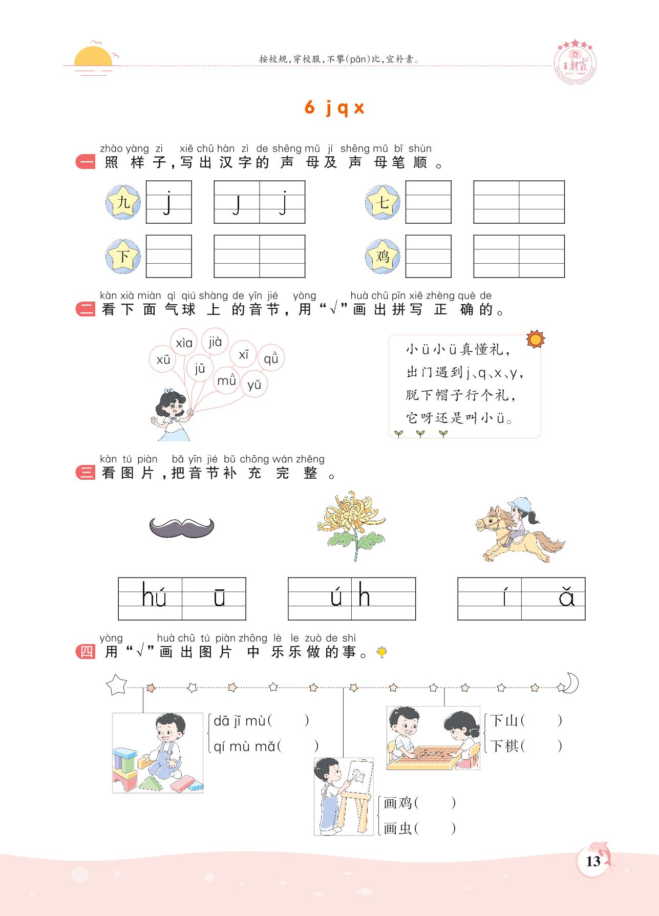 2021上册一年级语文人教版 第二单元 汉语拼音——6 j q x