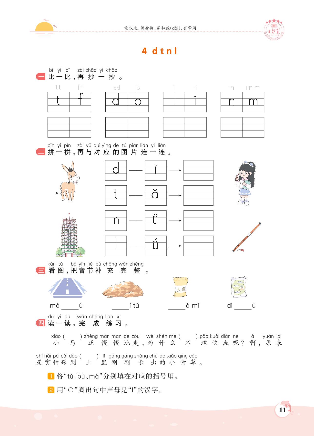2021上册一年级语文人教版 第二单元 汉语拼音——4 d t n l