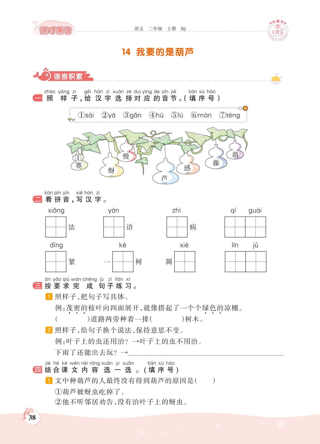 2021上册二年级语文人教版 第五单元 课文——14 我要的是葫芦