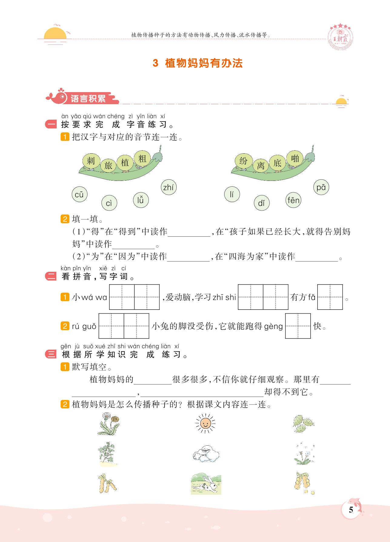 2021上册二年级语文人教版 第一单元 课文——3 植物妈妈有办法