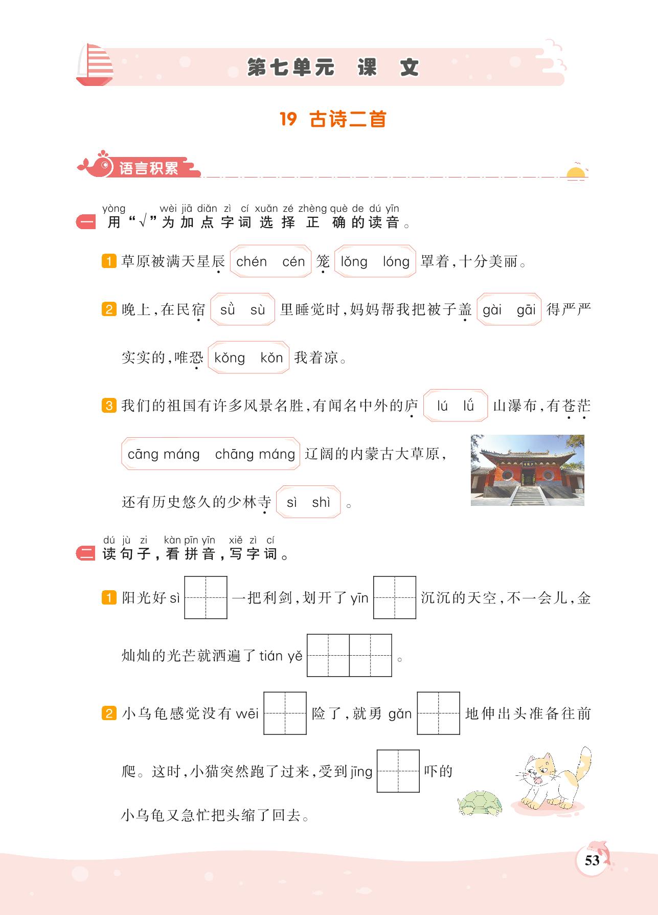 2021上册二年级语文人教版 第七单元 课文——19 古诗二首