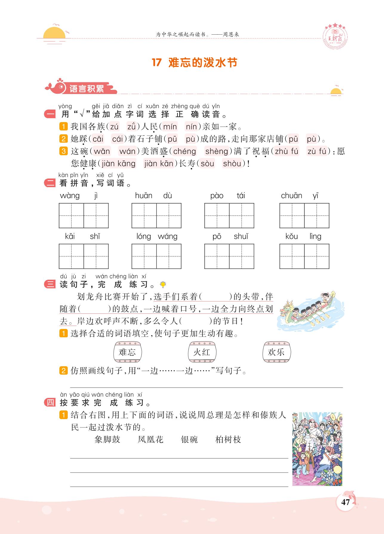2021上册二年级语文人教版 第六单元 课文——17 难忘的泼水节